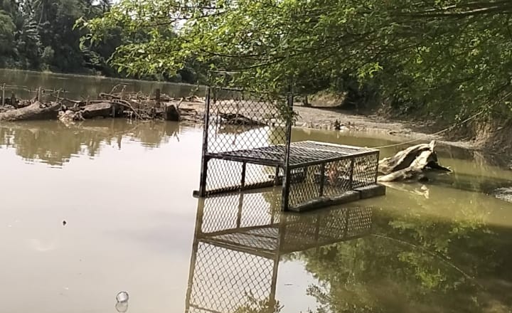 Aceh Barat | Meuligoenews.com : Perangkap buaya yang sebelumnya terpasang di Gampong Pasie Aceh Tunong, Kecamatan Meureubo, Kabupaten Aceh Barat, kini telah dipindahkan ke lokasi baru di Gampong Beuregang, Kecamatan Kaway XVI.