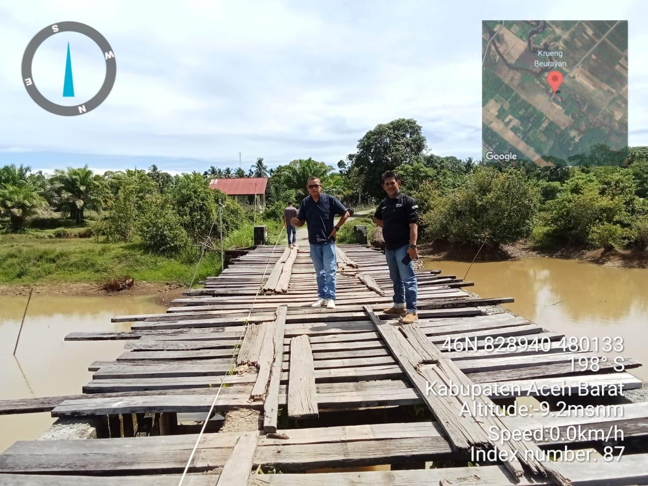 Meuligoenews.com | Meulaboh -Pemerintah daerah kabupaten Aceh Barat Melalui Dinas Pekerjaan Umum dan Penataan Ruang (PUPR) setempat melakukan survei atas laporan warga terkait kerusakan jembatan penghubung Desa Panton Makmur dan Alue Batee, Kecamatan Arongan Lambalek.