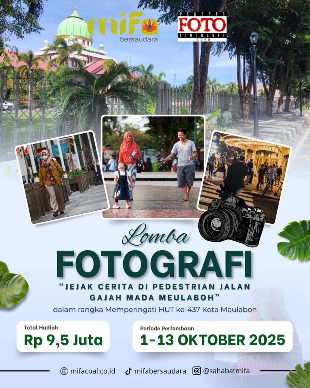 Aceh Barat, Meuligonews.com – Dalam rangka memperingati Hari Ulang Tahun (HUT) ke-437 Kota Meulaboh, PT Mifa Bersaudara bekerja sama dengan Pewarta Foto Indonesia (PFI) Aceh menggelar lomba fotografi bertema “Jejak Cerita di Pedestrian Jalan Gajah Mada Meulaboh”.